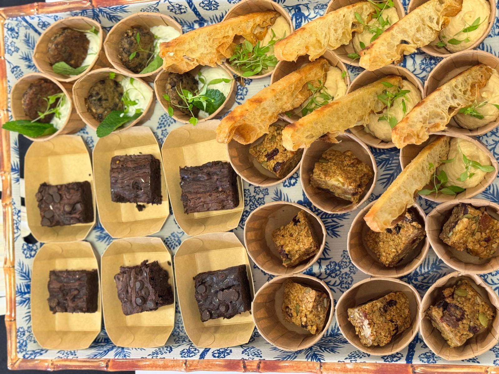 Operating from the Lentils.org stand, Andy utilized the on-site kitchen facilities to prepare a diverse range of dishes that challenged traditional perceptions of lentils. The menu spanned from breakfast to dessert, featuring soft and chewy lentil granola bars, mini curried lentil cakes with herbed yoghurt, and lentil keftedes. He also demonstrated how lentil hummus could serve as a cost-effective, nutritious alternative to mayonnaise in wraps, and even showcased a ‘sweet’ application with rich lentil brownies.