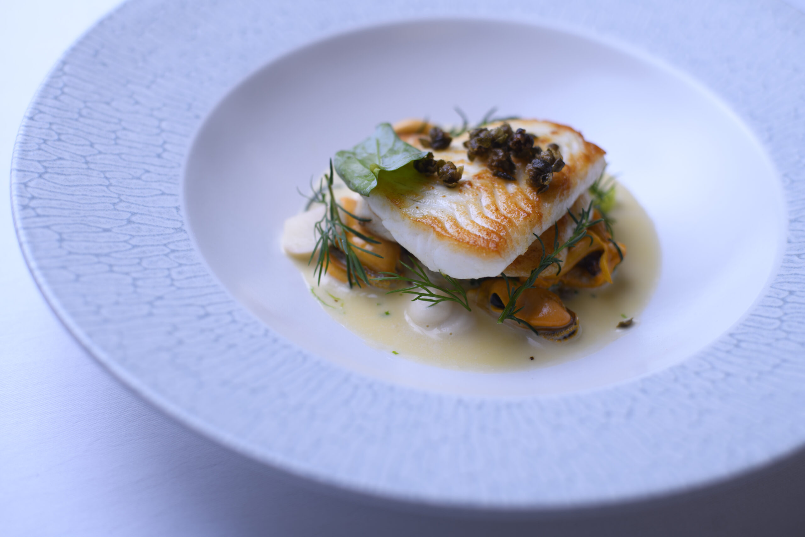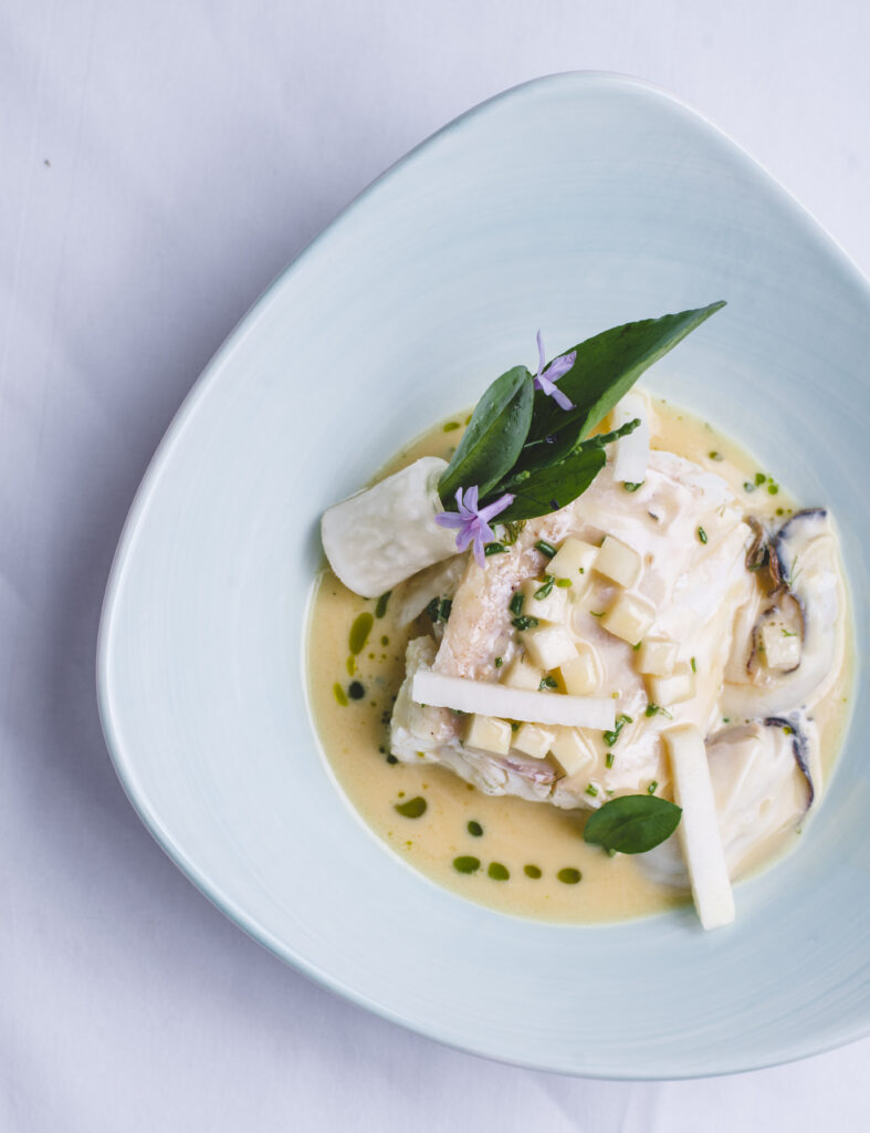 Jessica’s award-winning dish was: confit cod fillet with dashi beurre blanc and oyster